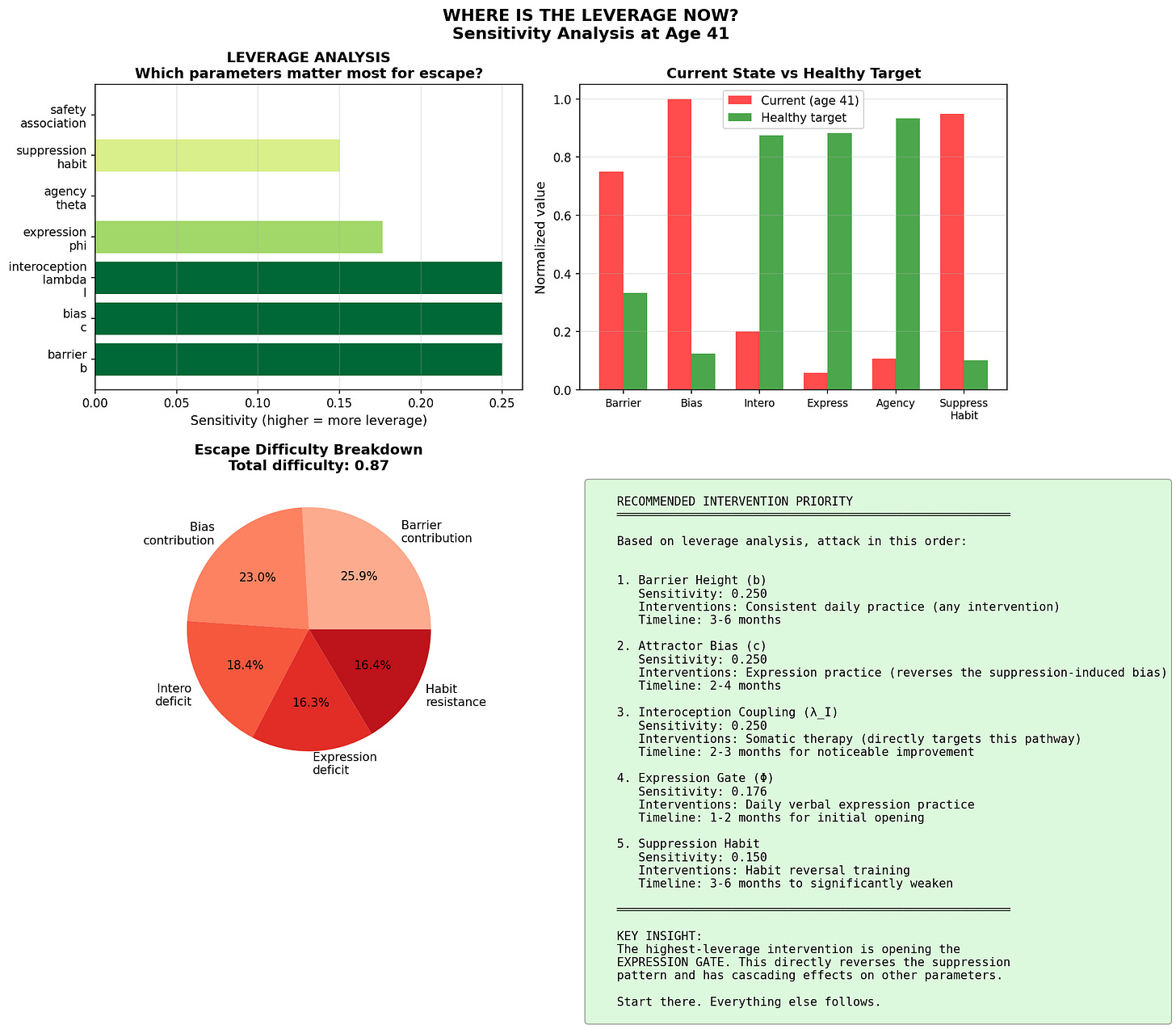 And every single one of those suppression events deepened the attractor. Made the condition harder to escape. Built the wall higher around the prison I was already trapped in.