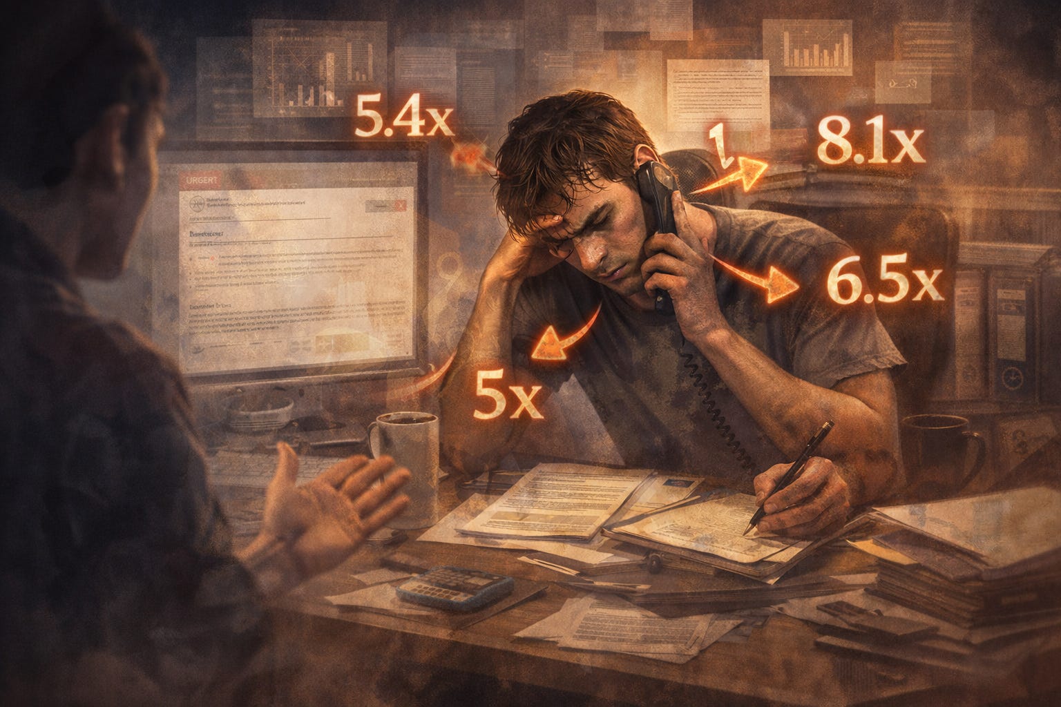 The exhaustion isn’t weakness. It’s cumulative debt. Every day for 27 years, I’ve been spending five dollars to buy one dollar of function. The deficit compounds.